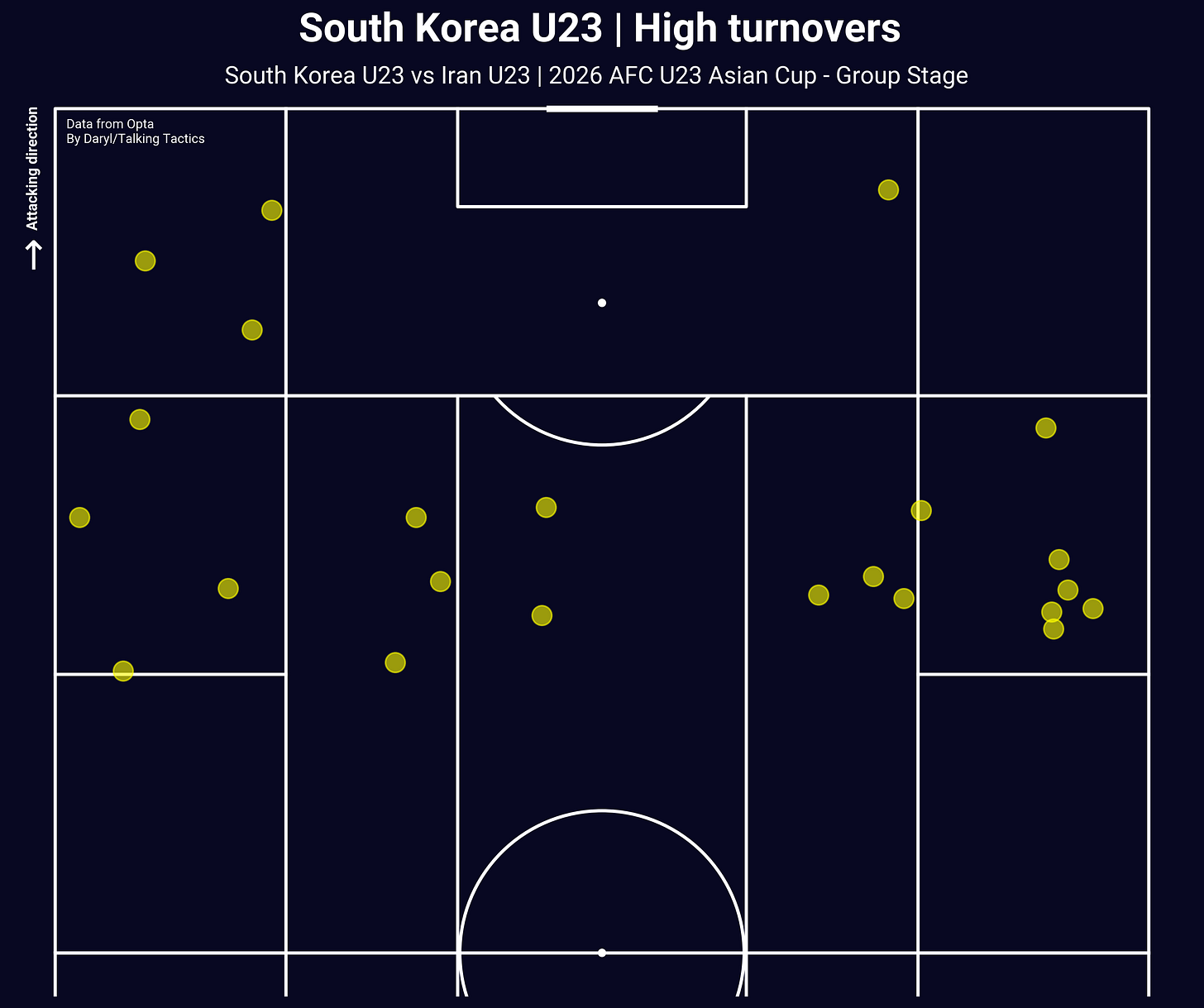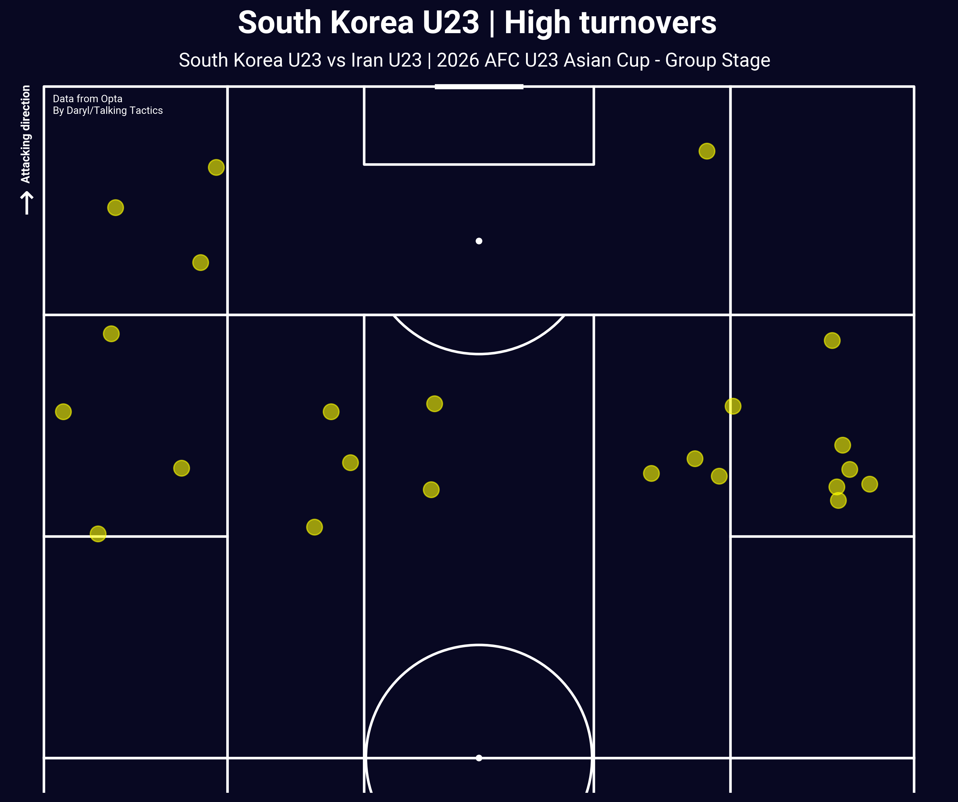 The same can be said about Iran’s attacking chances, though I thought they came a bit closer thanks to the counter-attacks that they had by winning the ball from South Korea inside of their own half. With South Korea’s preference to commit numbers forward for their attacks, they only left the two centre-backs back home to defend against counter-attacks and Iran was able to make use of that. But as Iran got into the final third, their wing reliance also backfired with South Korea quickly regrouped and overloaded the box, making it a lot harder for any Iranian attackers to connect with the crosses coming into the box.