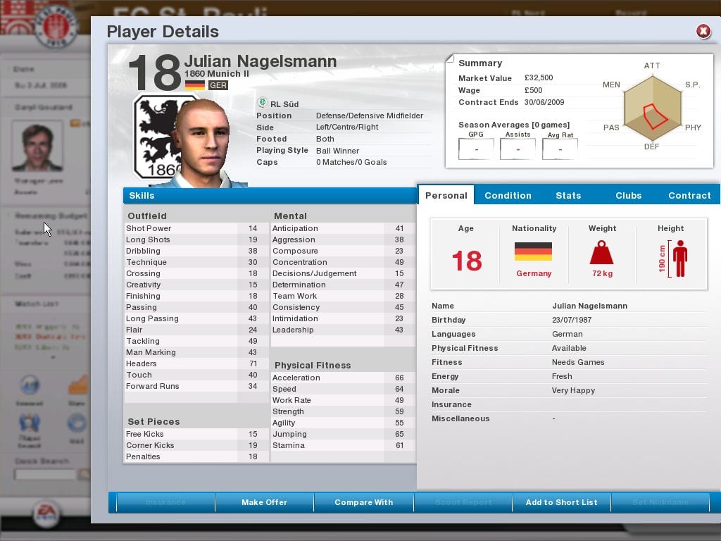 Like other nerds who play football management games, I wanted to utilise the tools available to me to understand why my St. Pauli team weren’t performing very well even after signing this wunderkid. That was when the game’s MAT section started to reveal itself.