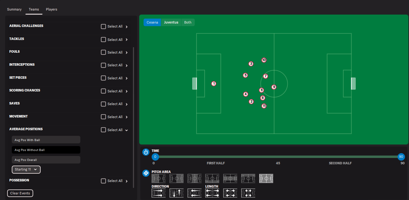 Their presence at the back was a major factor to help my Cesena side dealt with the crosses that came in from Owen Wijndal and Dani Carvajal while also keeping Dušan Vlahović quiet on the day. Up front, I used Ola Brynhildsen (bought from Internazionale) on the left and he challenged Carvajal quite often during the match. But my test of using Dante Vanzeir (bought from Union Saint-Gilloise) as a deep-lying forward did not work out so well and I had to brought on Cristian Shpendi and changed the role to a pressing forward on attack.